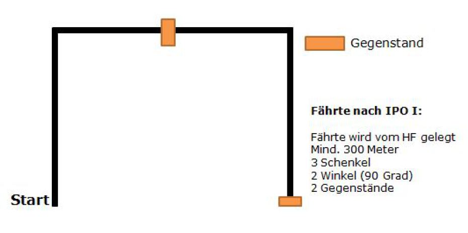 Der HF legt die Fährte die sein Hund suchen soll selbst, diese weist mindestens eine Länge von 300 Meter auf und enthält 3 Schenkel, 2 Winkel (90°) und 2 Gegenstände welche mindestens 20 Minuten auf der Fährte liegen, bevor der Hund das suchen beginnt. Man hat für die Suche 15 Minuten Zeit.